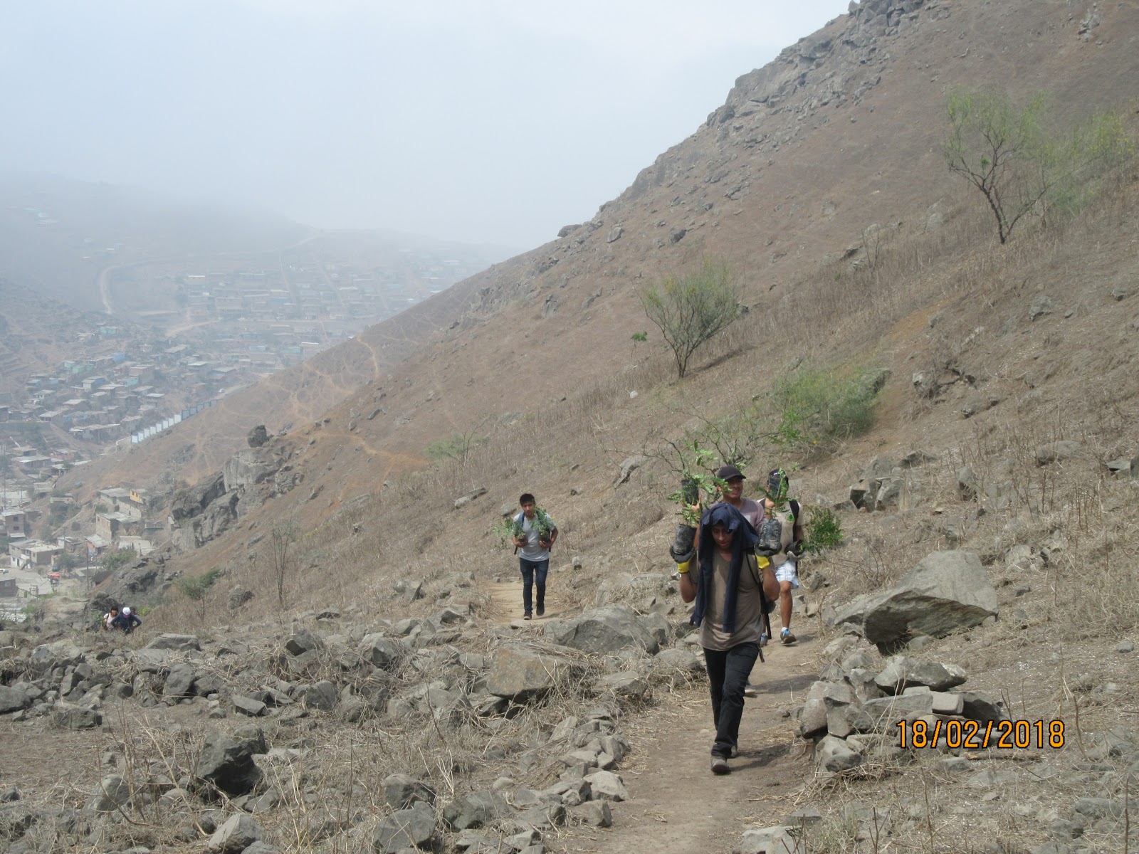 Participaron además la ONG Alev y Comando Ecológico. El hidrogel servirá para que no se evapore rápidamente el agua de riego, y así lograr que sobrevivan los arboles con la suficiente agua en la raíz. Toda la actividad estuvo organizada con una logística que aseguraba el éxito de la actividad. Se reunieron los voluntarios en la Estación María Auxiliadora del Tren Eléctrico, a las 8.00am, a las 9.30am ya se encontraban al inicio del Circuito Ecoturistico, donde los esperaban los vecinos con la logística para la reforestación. Los niños eran los mas entusiastas en participar. También ayudaron a cargar los arboles, agua y hasta las sandias que se compraron para los voluntarios, frescas que se compraron a un vendedor que llego hasta la zona de inicio del circuito en su carretilla.